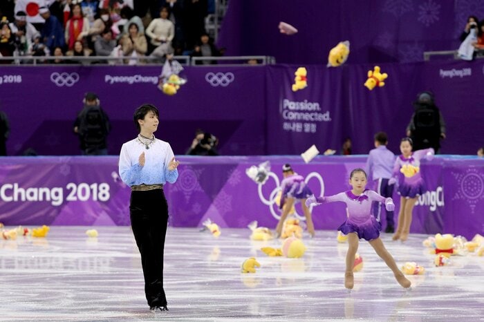 2018年の平昌五輪でショートを終えると、スケートリンクに羽生さんの大好きなプーさんのグッズがたくさん投げ込まれていました。