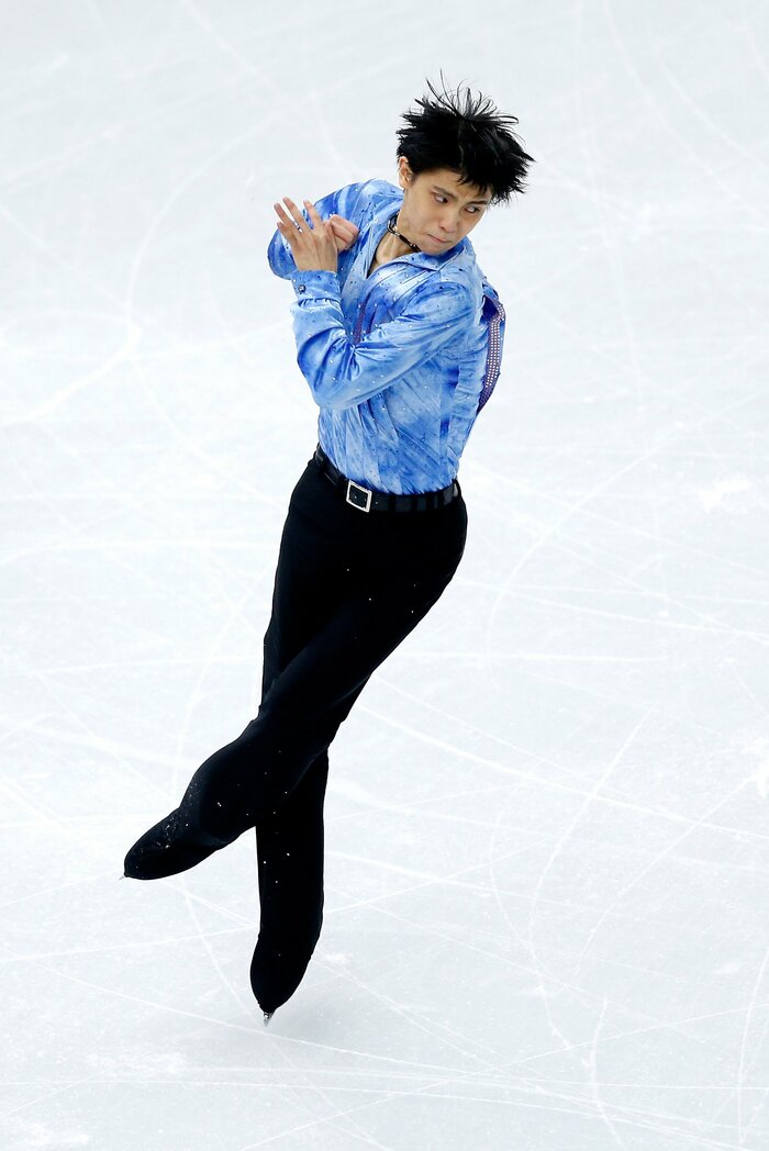 当時羽生さんが19歳で初出場した、2014年ソチ五輪の男子ショートでは、さわやかな白とブルーのマーブル模様があしらわれたシャツに黒のパンツを合わせたスタイルで登場。