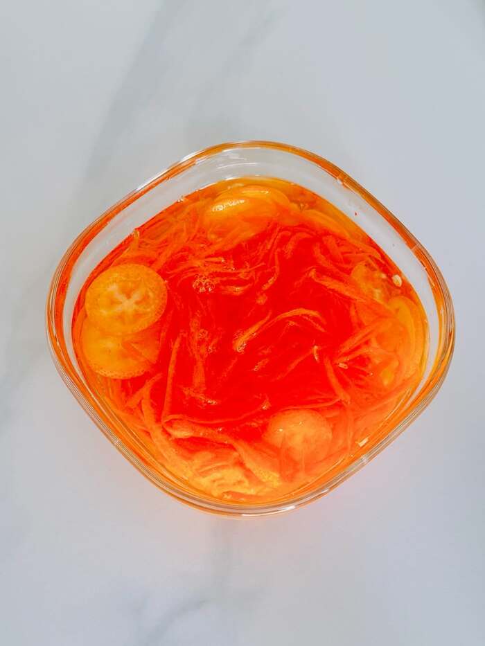にんじんと一緒に漬け込まれた金柑の断面がアクセントになっていて、とってもおいしそう。