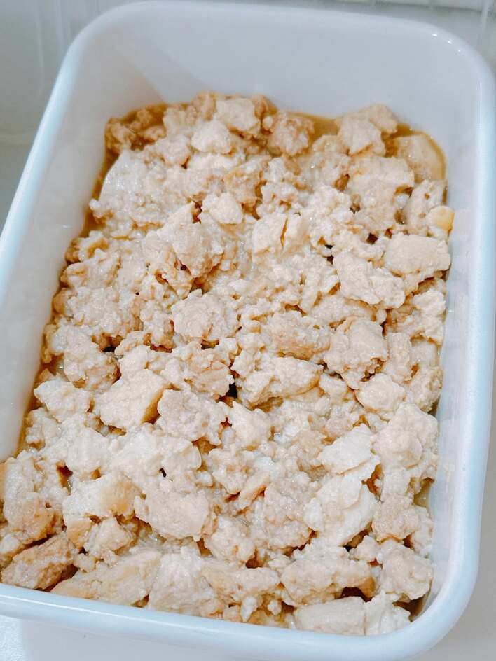 続いて、そぼろ肉と豆腐をフライパンで炒め合わせた「そぼろ豆腐」。