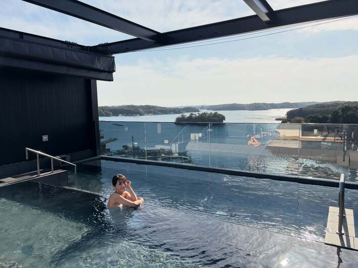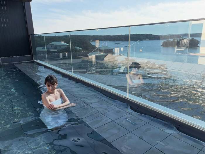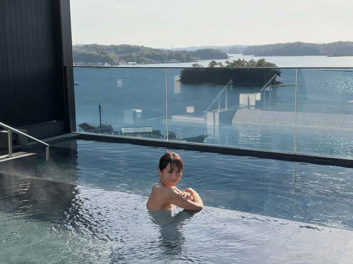 釈さんは、「志摩の美しい絶景を眺めながら、美肌の湯を堪能」と振り返っていました。