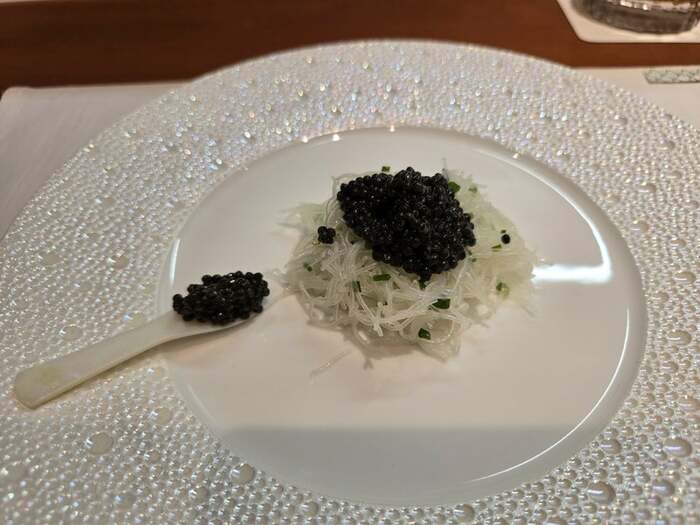 「フランス 日本の2種のキャビア乗せ冷たいビーフン」、