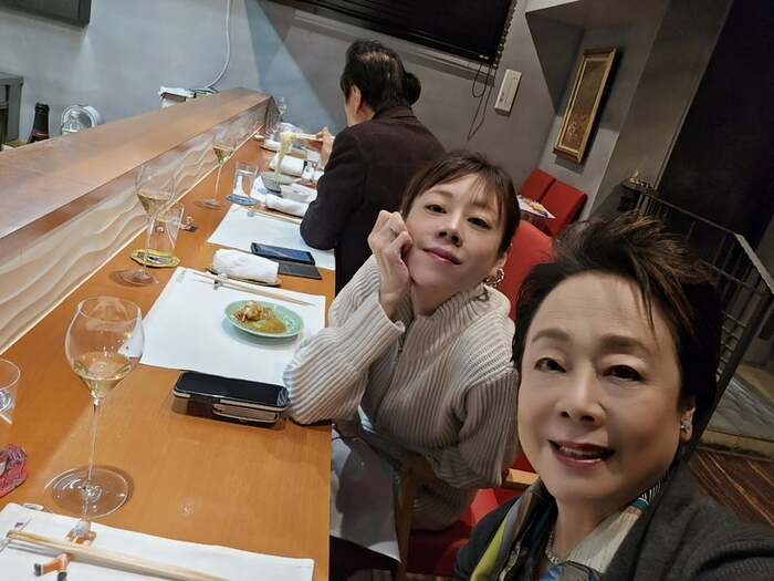 そんなバースデー会食には、娘の真麻さんも駆けつけたようで、カウンターに仲良く座った3ショットも公開。カメラを見つめてニッコリと笑う妻と真麻さんに対し、高橋さんは背を向け、目の前の麺料理に夢中になっています。クスッと笑えるほほ笑ましいショットに、癒やされますね。