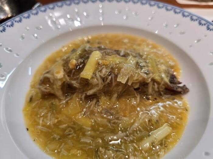 中華と言えばの「青サメフカヒレのステーキに黄ニラ 上海カニの餡掛け」や