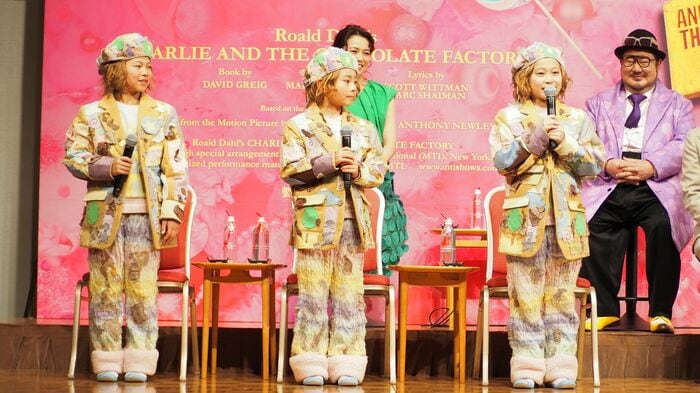 チャーリーの母親を演じる観月さんは「初めて会ったときに私のことを『背が高い!』と驚いていたけど、多分、公演中に3人ともどんどん伸びていくので…」とこの先、さらに成長していくことを予測して話すと、すかさず堂本さんが「マジで俺の身長抜かすなよ!」と“お願い”。場内を笑いの渦で巻き込みました。