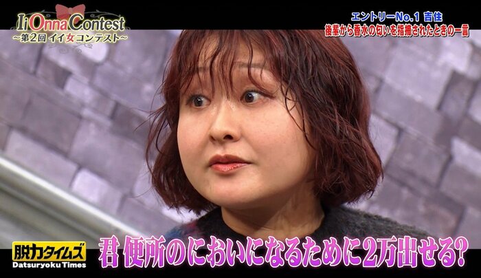 吉住さんは、男性の後輩芸人から、自分がつけている香水を「トイレの芳香剤みたい」と指摘されたときの一言。