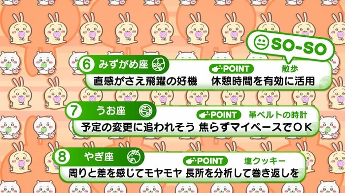『めざましテレビ』で放送中の「ちいかわ占い」 テレビ放送がない日はお休みで、月~土:朝7時以降に更新予定です。