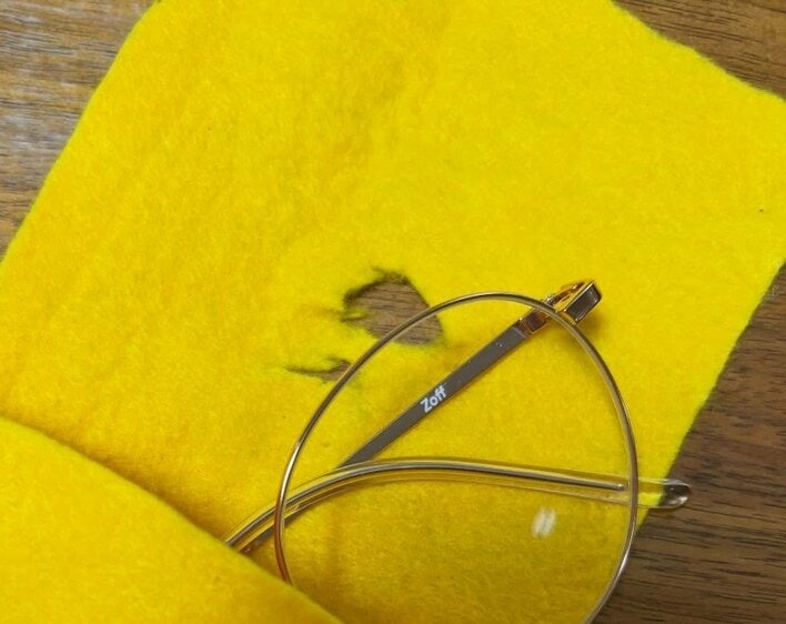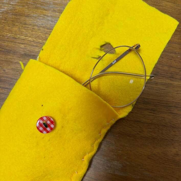 それは、鮮やかな黄色の生地で作られた薄型タイプのメガネケース!