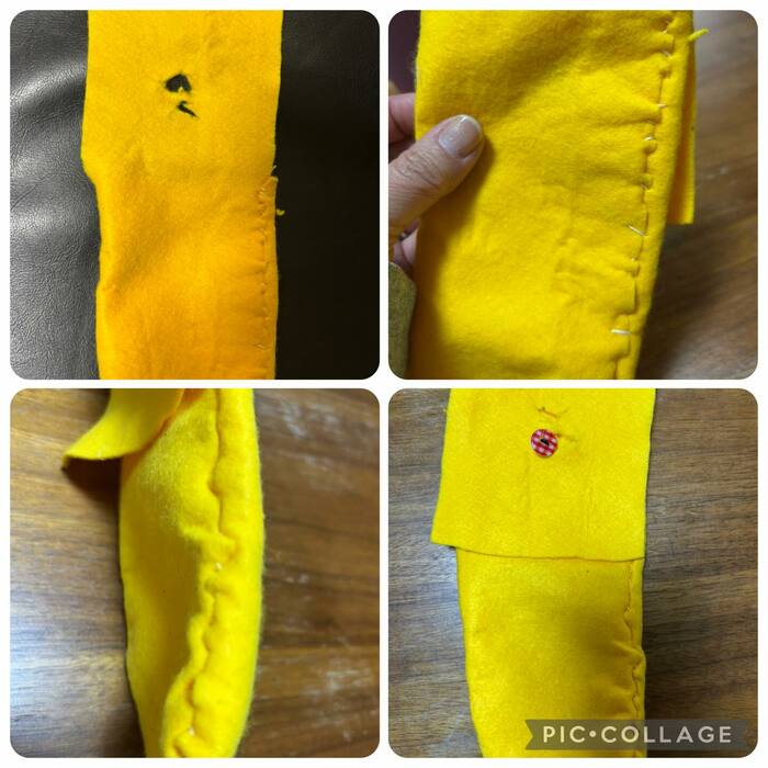 縫い目の間隔がまばらな部分もありますが、生地が破けないように努力したことが伝わります。