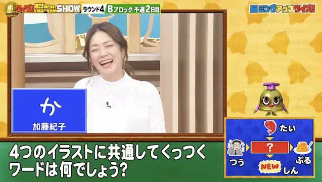 加藤さんの答えは、「か」。なんとなく合っているようですが、「[?]ぷる」はちょっと違和感が…残念ながら不正解。