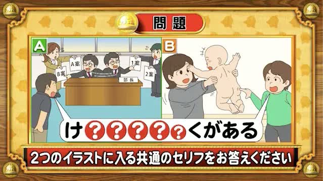 次は、共通セリフ問題。次の2つのイラストに入る共通のセリフを答えてください。