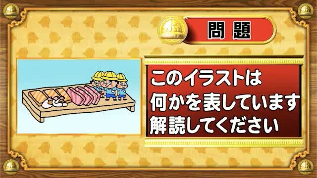 最後は、イラスト暗号の問題。次のイラストが表しているものを解読してください。