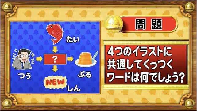 最初は「脳ミングアップクイズ」から、くっつきワードの問題。次の4つのイラストに共通してくっつくワードを答えてください。
