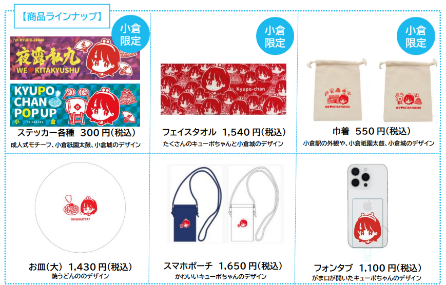 株式会社 JR 小倉シティは、JR 九州と連携し、JR キューポのインフルエンサーを目指す妖精「キューポちゃん 」 のオリジナルグッズを販売する POP UPショップを、ポップアップ北九州 -KOKURA BASE-(小倉駅 3 階) にて 2026 年 3 月 5 日(木)~3 月 8 日(日)に開催します。 北九州ならではの限定デザインや地元企業・団体とのコラボ商品を含む、約 30 種類のキューポちゃんグッズ を販売予定です!北九州初開催、キューポちゃん POP UP をお楽しみください。