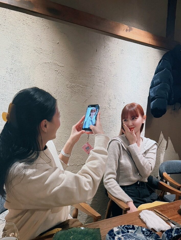 公開された写真には、飲食店でポーズを決める鈴木さんを、楽しそうに撮影する榮倉さんの姿が。