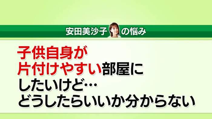 「子供自身が片付けやすい部屋にしたいけれど、やり方がわからない」という、安田さんのお悩みも登場しました。