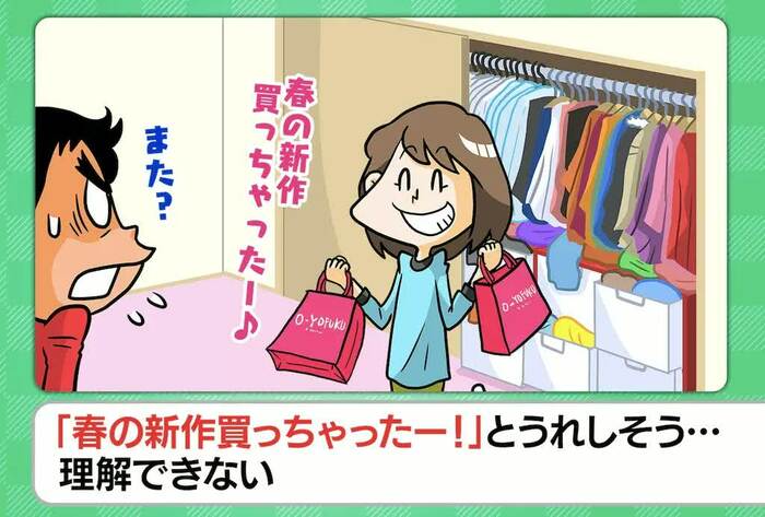 「買い物好きの妻が洋服を買いすぎて、クローゼットからあふれている。理解できない」という男性のボヤきでは、竹山さんが「新しいモノは欲しくなっちゃうんだよね」と苦笑。