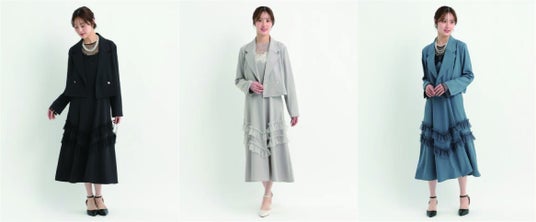 おしゃれを楽しみながらも、多くの女性が抱えるお悩みを解決し「スタイルアップ」の実現に着目。トレンドのチュール素材をインナーに採用することで、軽やかな抜け感を出しつつ、気になる二の腕を自然にカバー。ジャケットは絶妙な丈感にこだわり、足長効果を演出するショート丈を採用し、キャミドレスはより縦長に見えるロング丈で合わせました。