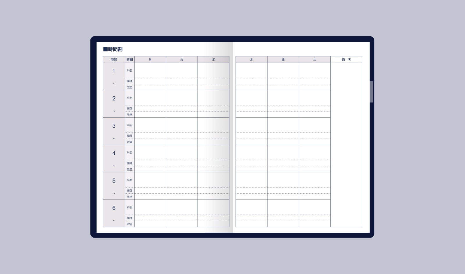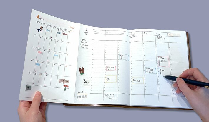 1冊あたりを薄く軽量化することで、しっかり書ける手帳でありながら持ち歩きやすさを実現しています。大学の履修管理はもちろん、プロジェクト単位で予定を区切りたい社会人や、荷物を軽くしたいユーザーにも好評です。
