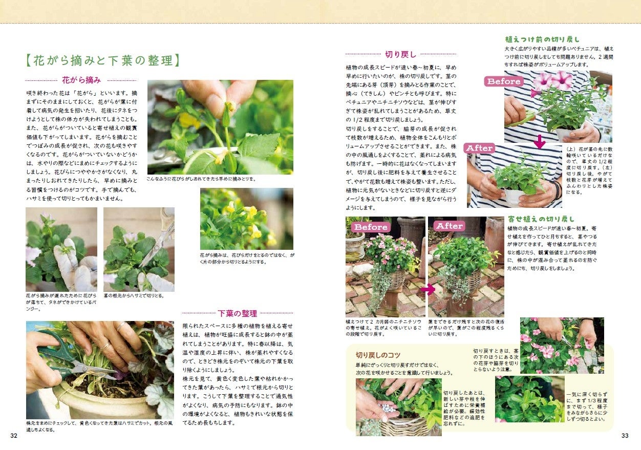 作った寄せ植えをきれいに保つためのコツもしっかり網羅しています。