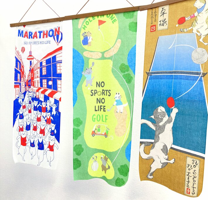 手ぬぐい全面に競技のワンシーンを詰め込んだデザイン。