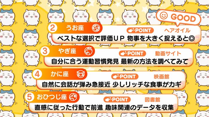 『めざましテレビ』で放送中の「ちいかわ占い」 テレビ放送がない日はお休みで、月~土:朝7時以降に更新予定です。