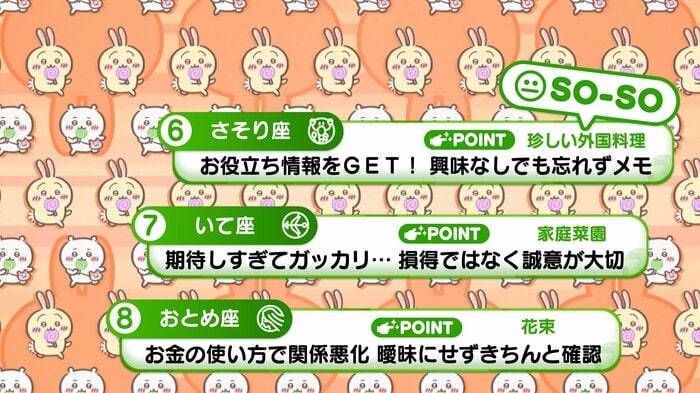 6位から8位の星座、ラッキーポイントはこちら。