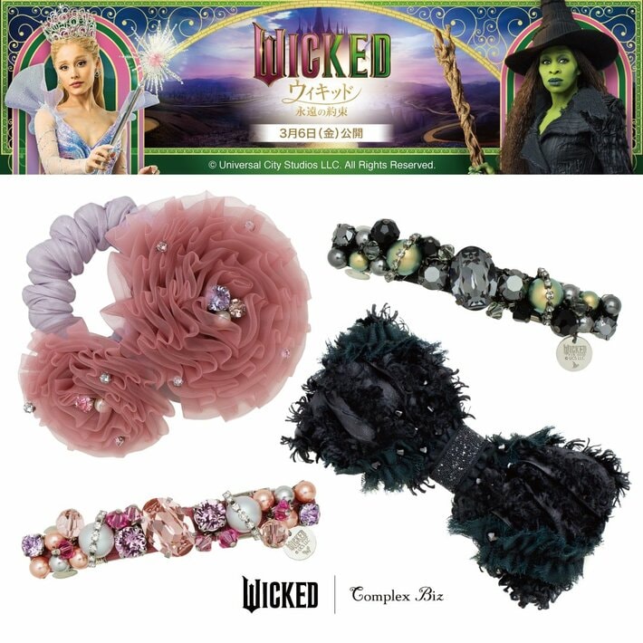 株式会社コンプレックス・ビズ・インターナショナル(本社:愛知県名古屋市 代表取締役:荻野 重利)が展開するヘアアクセサリーブランド「Complex Biz」と映画『ウィキッド 永遠の約束』とのスペシャルコラボレーション。魔法の世界に生きる、対照的な二人のキャラクターを上質な素材とスワロフスキー(R)・クリスタルで表現しています。