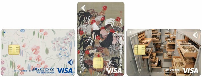 共創先の3法人が運営するミュージアムが収蔵する文化芸術、文化財、標本・資料の中から厳選し、券面にいたしました。お客さまが選んだ券面デザインに応じて、それぞれの法人へ寄付ができます。