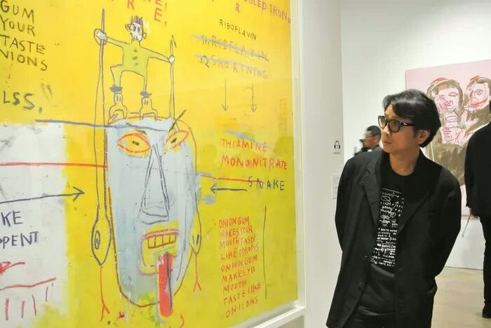 東京・六本木の森アーツセンターギャラリーで9月21日に開幕した「バスキア展 メイド・イン・ジャパン」。初日を目前に控えた20日に行われた内覧会に、芸能界きってのアート好きとして知られる藤井フミヤが来場した。
