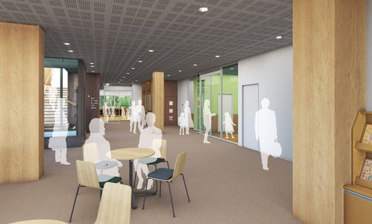建て替え工事が完了し、生涯学習機能と子育て支援機能に、多世代交流による地域コミュニティ機能を加え、新たな複合施設として2月16日(月曜日)に開館します。