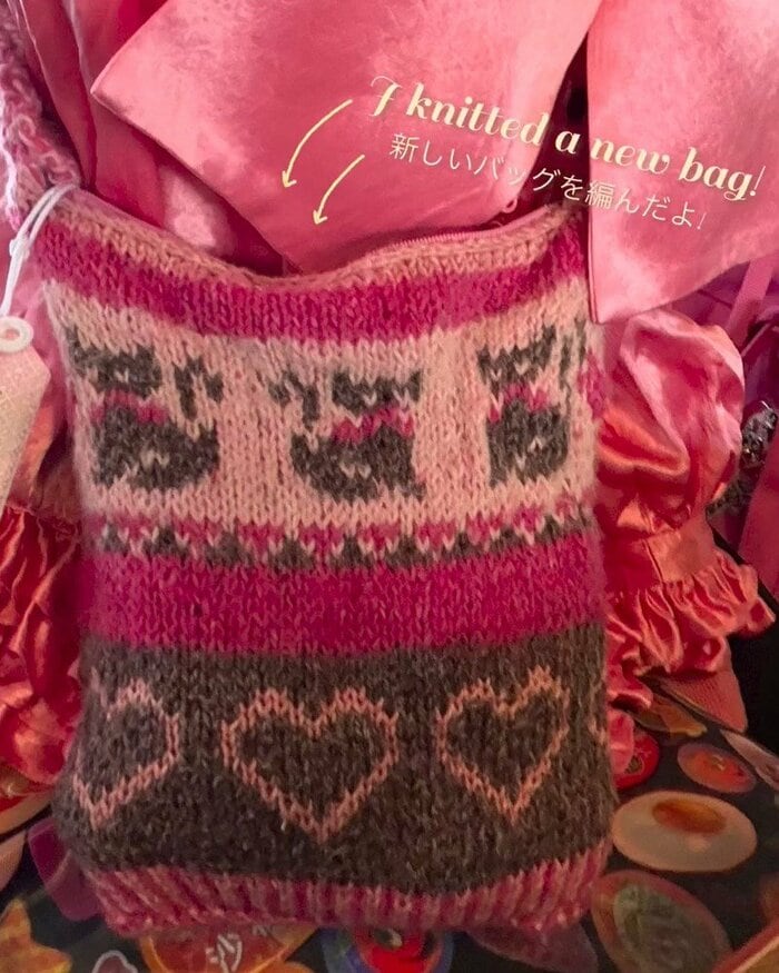 今回の投稿では「新しいニットバッグ編んだよ!!」とつづり、かわいらしいアイテムを披露しています。