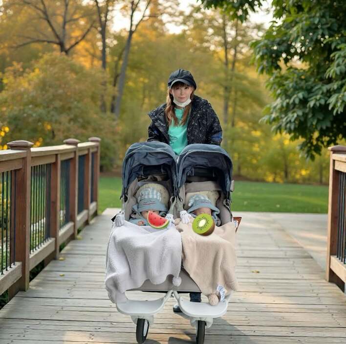 今回の投稿では「双子ベビーカーでお散歩がたのしい」とつづり、自然の中で散歩を楽しむ姿をアップしました。