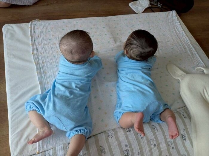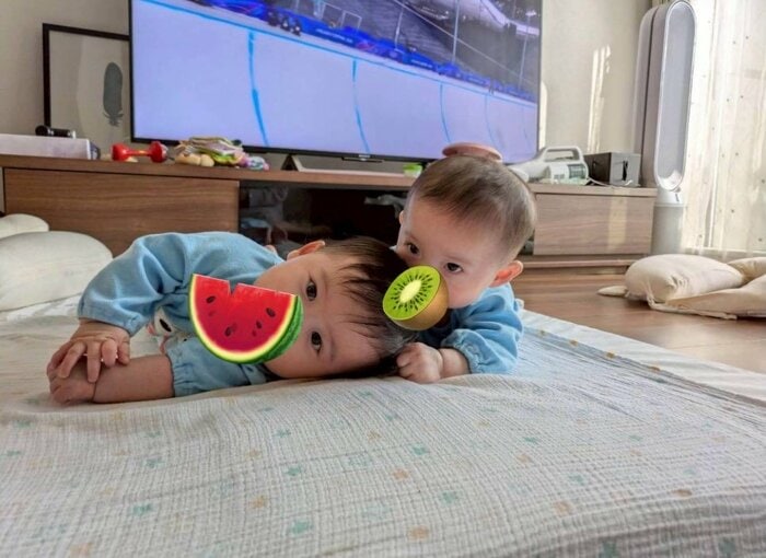さらに、双子がうつぶせ遊びをしてる様子も披露。