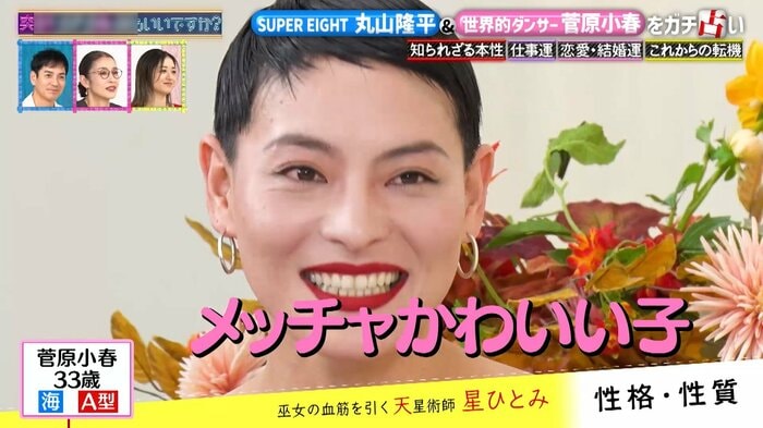 星さんは菅原さんについて、ちゃんとしているように見えるけれど「本当はおっちょこちょいで、うっかりさん」と鑑定。ダンサーである菅原さんは、じっとしているより常に動いていたいタイプだと話しました。