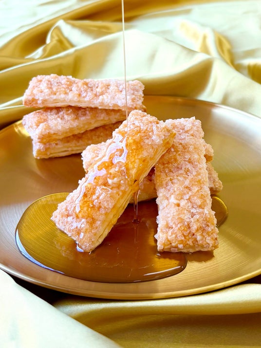 432層のさくさく食感のミルフィーユ生地に世界トップシェアのカナダ産メープルシロップ、フランス産発酵バターを塗り焼き上げました。