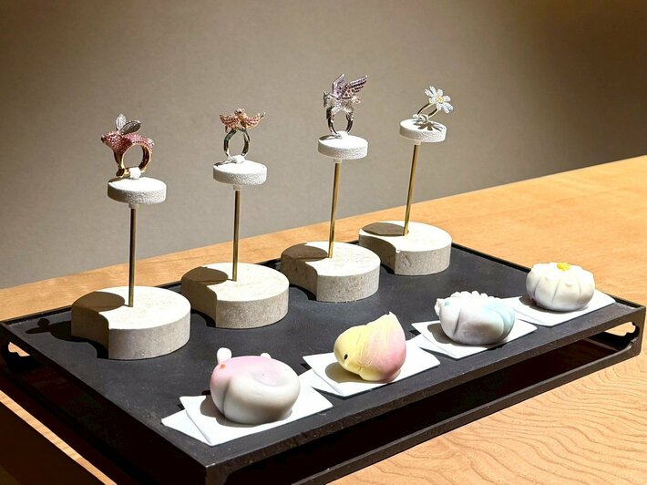 「ミオさんのジュエリーは、宝石という長い時間をかけて生まれたものを自然に生きる生き物の姿に重ねて表現されているところが、とても印象的でした。和菓子も同じく自然からいただいた素材で季節の移り変わりを形にしていく文化です。