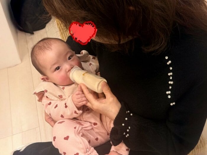 さらに「ユメにミルクを嬉しそうにあげてくれてる」とつづり、母と夢空ちゃんのツーショットを公開。