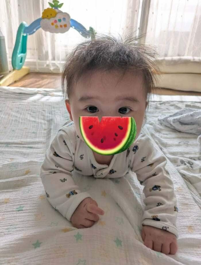 「ずり這いがはじまり寝返りコロンコロンするから ぶつけないか心配」と、行動範囲が広がり、ますます活発になっていく様子に心配が尽きない胸の内も明かしていますが、日々元気にすくすく成長中のようです。