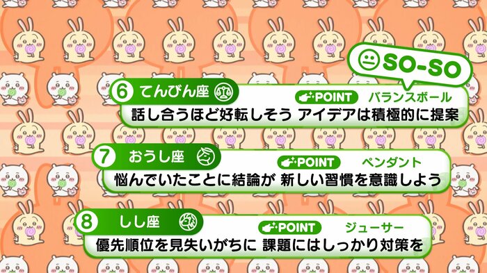 『めざましテレビ』で放送中の「ちいかわ占い」 テレビ放送がない日はお休みで、月~土:朝7時以降に更新予定です。