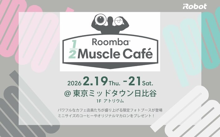 アイロボットジャパン合同会社(本社:東京都千代田区/代表執行役員社長 山田毅)は、ルンバの新たな世界観を体験できる期間限定イベント「Roomba1/2 Muscle Cafe」を、東京ミッドタウン日比谷にて2月19日(木)から2月21日(土)まで開催いたします。