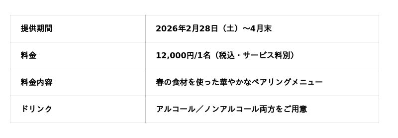 ■ 春限定ペアリングメニュー 概要