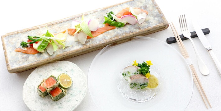 「春の和洋折衷コース」は、日本料理の繊細な味わいと、西洋料理の構成美を融合させた新たな試みです。