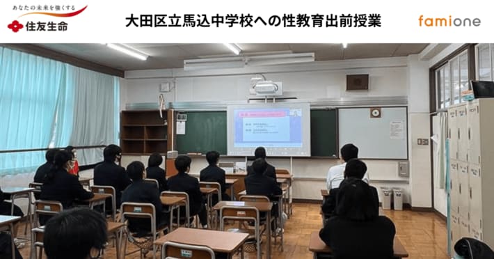 「子どもを願うすべての人によりそい 幸せな人生を歩める社会をつくる」をビジョンに掲げ、法人の従業員向け福利厚生や自治体の住民向け支援を行うヘルスケアサポートサービス「ファミワン」 https://famione.com/benefit/ などを展開する株式会社ファミワン(本社:東京都渋谷区、代表取締役:石川勇介)は、2026年1月に住友生命保険相互会社(本社:大阪府大阪市、取締役 代表執行役社長:高田 幸徳)との協業に関するプロジェクトの一環として、性教育に関する出前授業を、東京都の大田区立馬込中学校でオンライン開催しました。