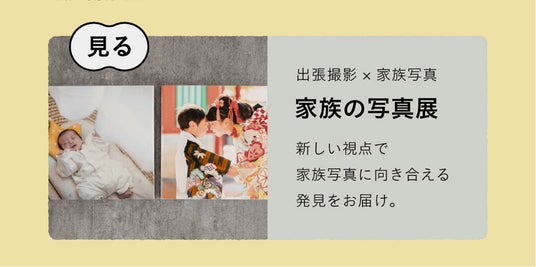 数年間にわたり、ご家族の大切な思い出をfotowaで紡いでくださってきた2組のご家族の家族写真を会場に展示します。撮影時のエピソードやご家族の写真への想いを併記し、「どの写真を、どんな形で残したいか」を考えるきっかけづくりを体感できます。