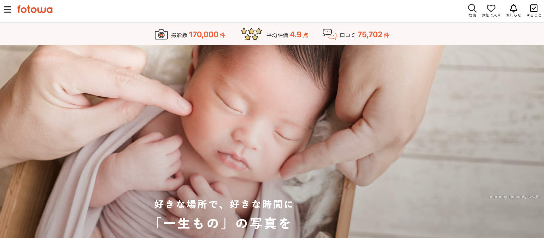 「fotowa」は、撮影して欲しい人とプロのフォトグラファーをつなぐ、家族・子ども向けの出張撮影プラットフォームです。