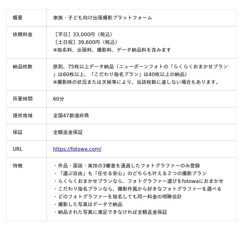 ■ 家族・子ども向け出張撮影プラットフォーム「fotowa」について