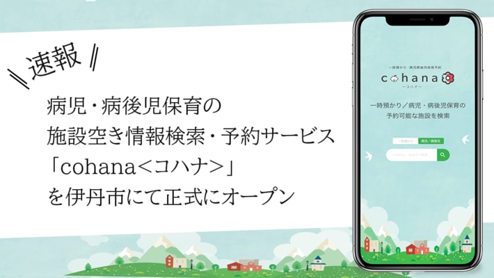 この度、シフトプラス株式会社(代表取締役:中尾 裕也、大阪市西区江戸堀2-1-1 江戸堀センタービル 8F)が兵庫県伊丹市で展開している病児・病後児保育の施設空き情報検索・予約サービス「cohana<コハナ>」を正式にオープンしました。