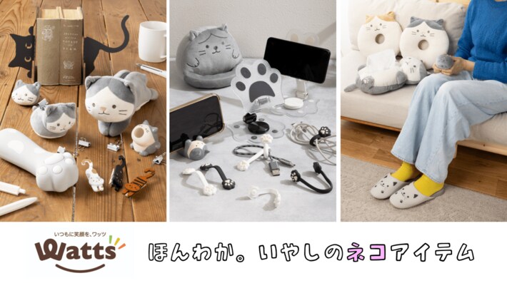 ワッツの展開するライフスタイル雑貨ブランド 「Tokino:ne(ときのね)」 には、デスクまわり、キッチン、インテリアなど、いつもの生活シーンで使えるネコグッズが勢ぞろい。