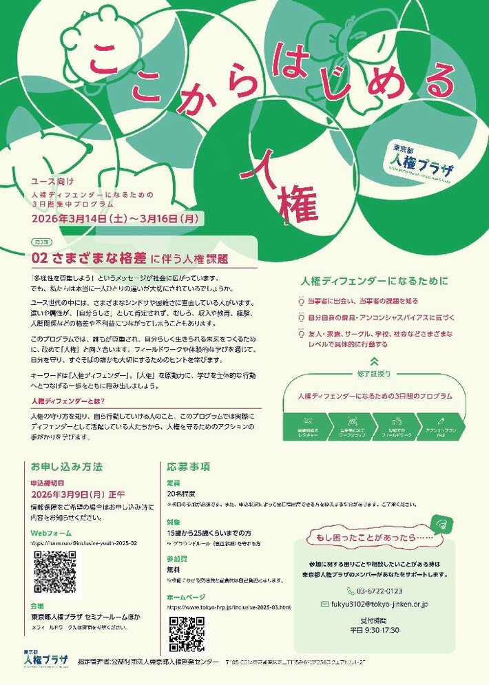人権ディフェンダーになるための3日間集中プログラム[第三期] <ユース向け>第2回:様々な格差に伴う人権課題